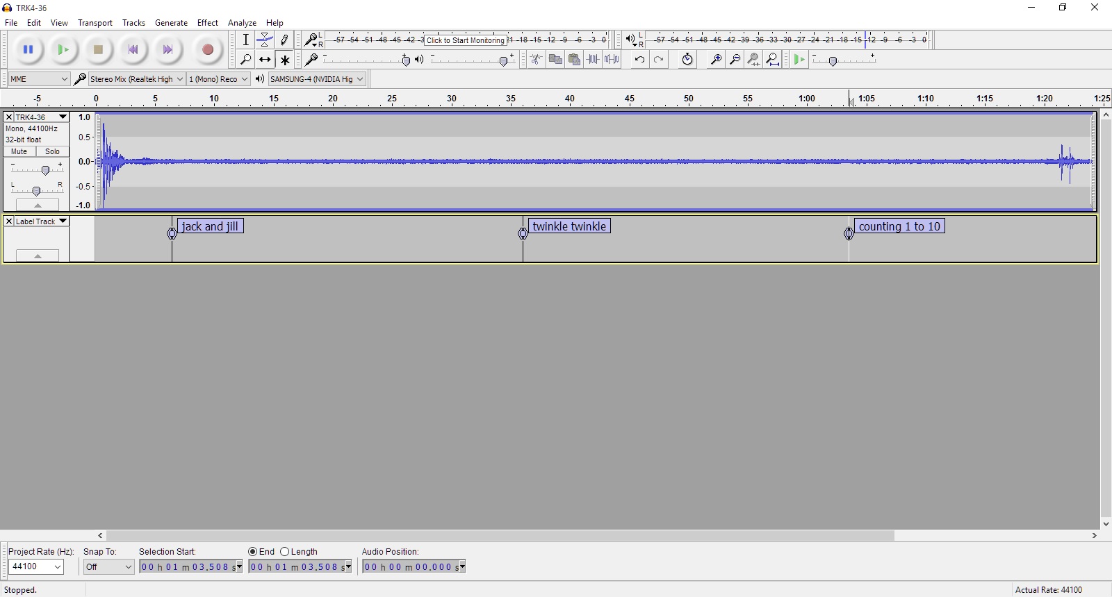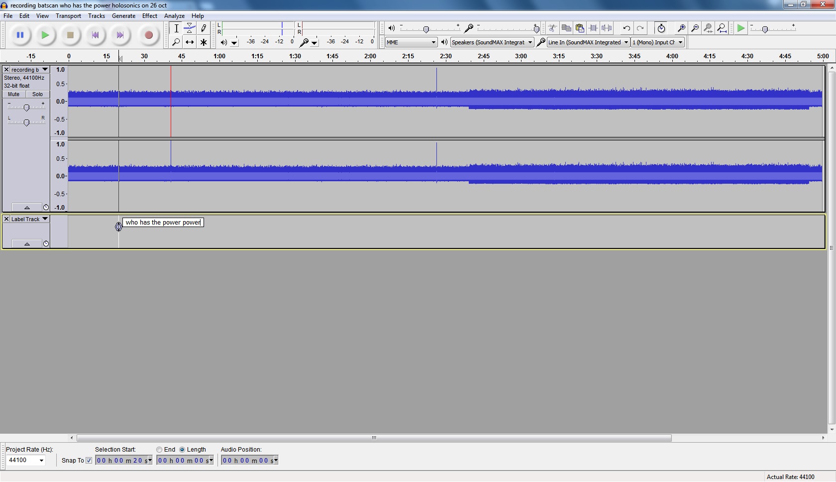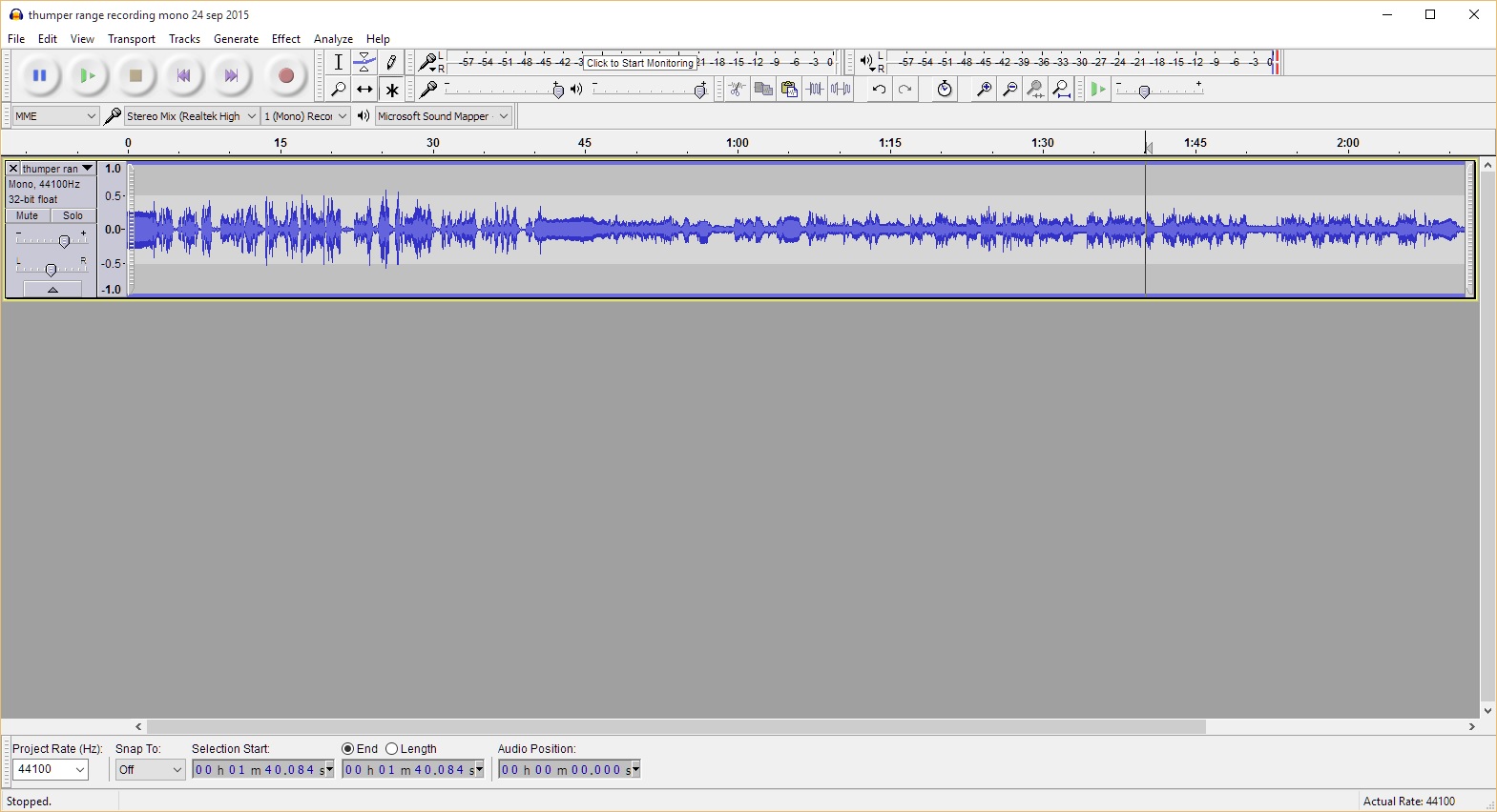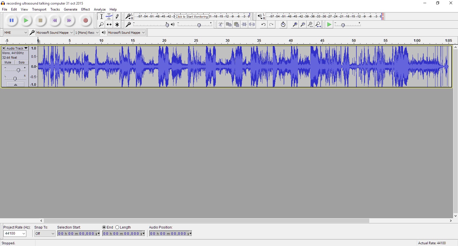 Recording with a vibrating speaker on the wall and recorded on the opposite side.