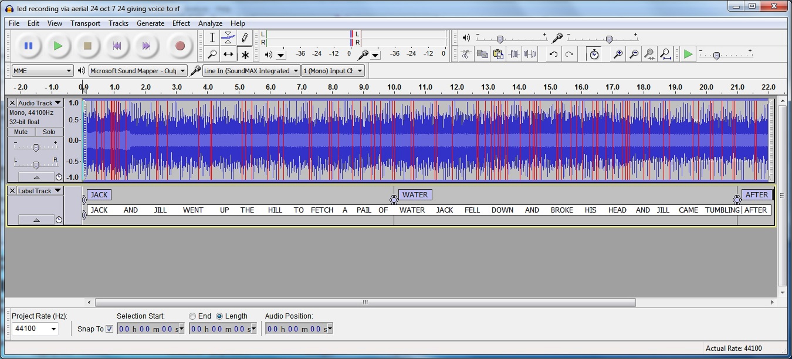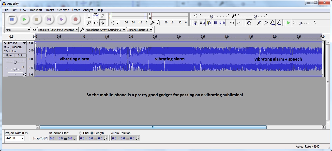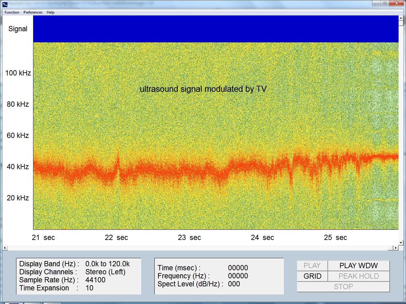 ultrasound subliminal projection into air using an ultrasound speaker. With normal hearing the subliminal is unheard. Recorded with ultrasound microphone.