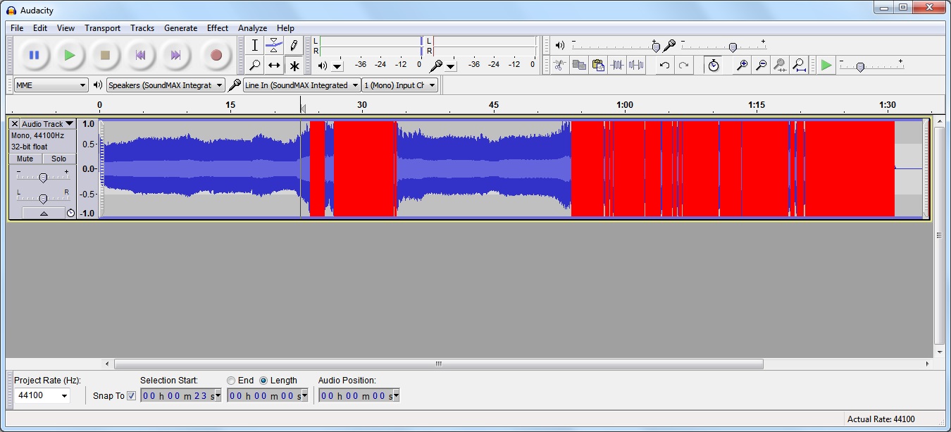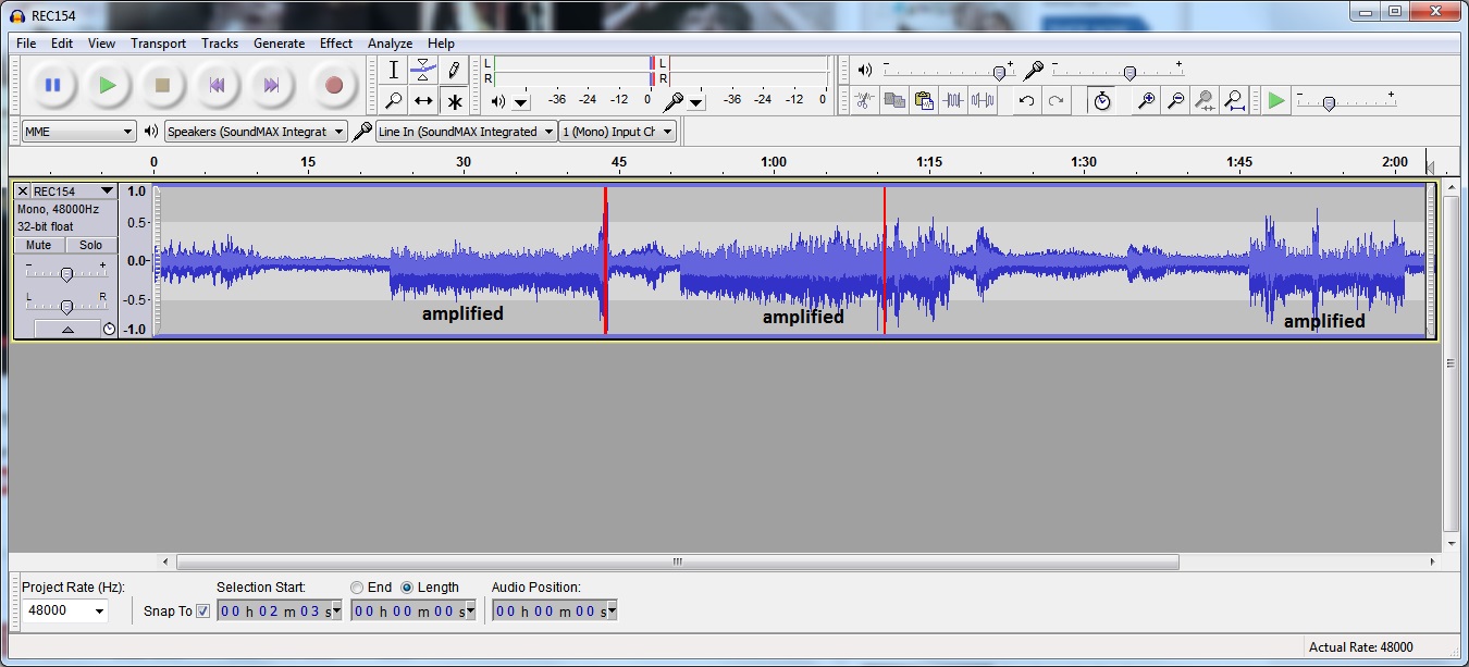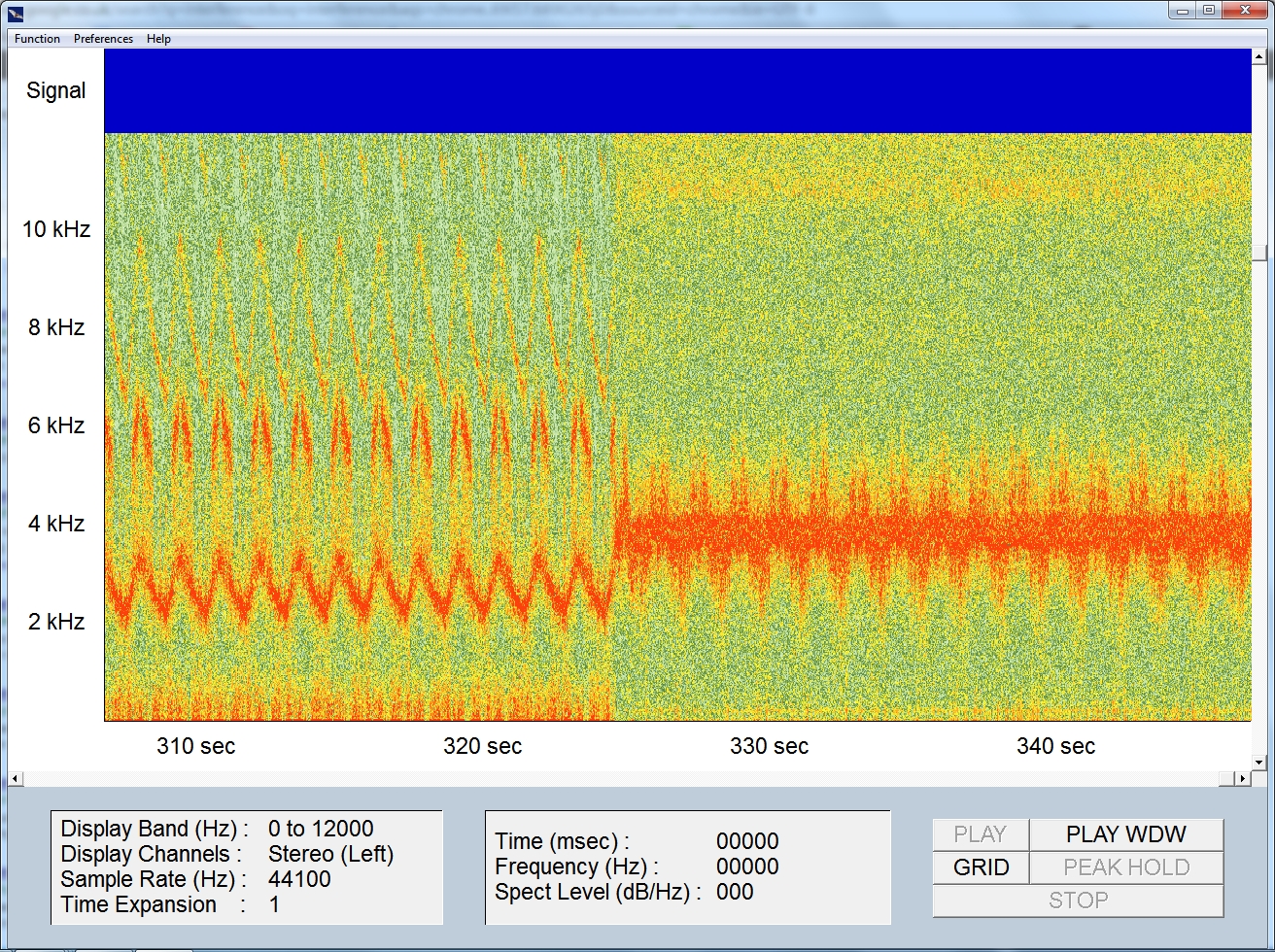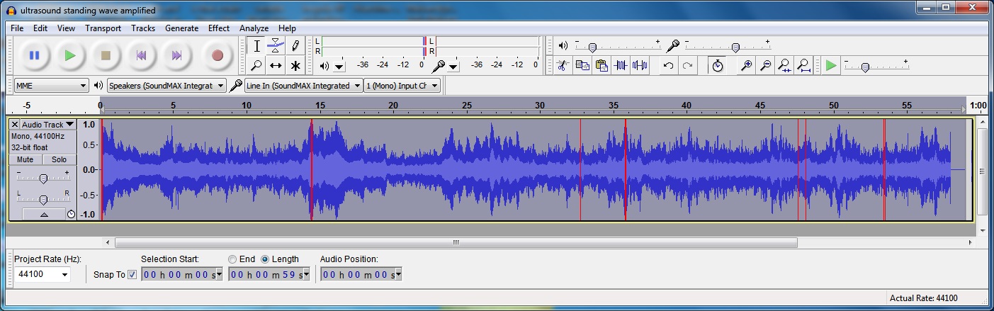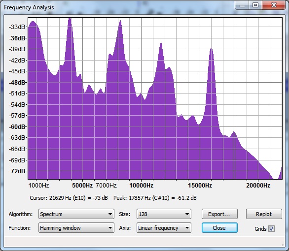 This is the analysis of the recording above and you can see the peaks and troughs of the standing wave.