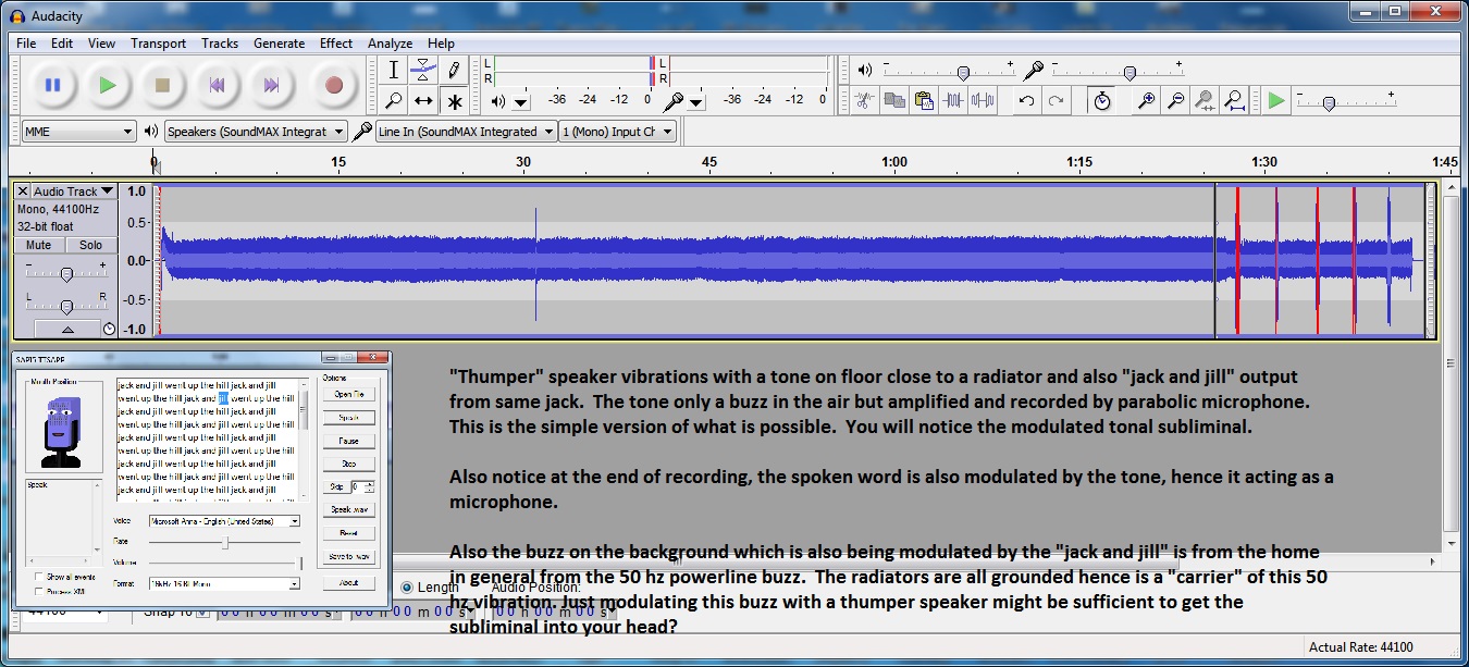 I touched on it here called “Powerline Hum”. Here I suggested that the hum of the powerline frequency, some countries 50Hz and other’s 60Hz can be used to amplify silent subliminal pressure waves in the air. Anything that vibrates in your home can amplify a silent subliminal signal. But here it is about interacting with an electromagnetic induction loop signal. There can be lots of buzzing interference with the induction loop receiver and the repeated sub instructions could have been a tonal rf signal or even possibly a silent sound pressure wave.