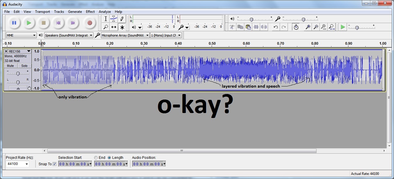 When we say words to ourselves, silently, or, read a book, we can actually feel the slight sensations of those words in our vocal muscles – all that is absent is the passage of air. Coordinated speech signals are relatively strong and relatively consistent.