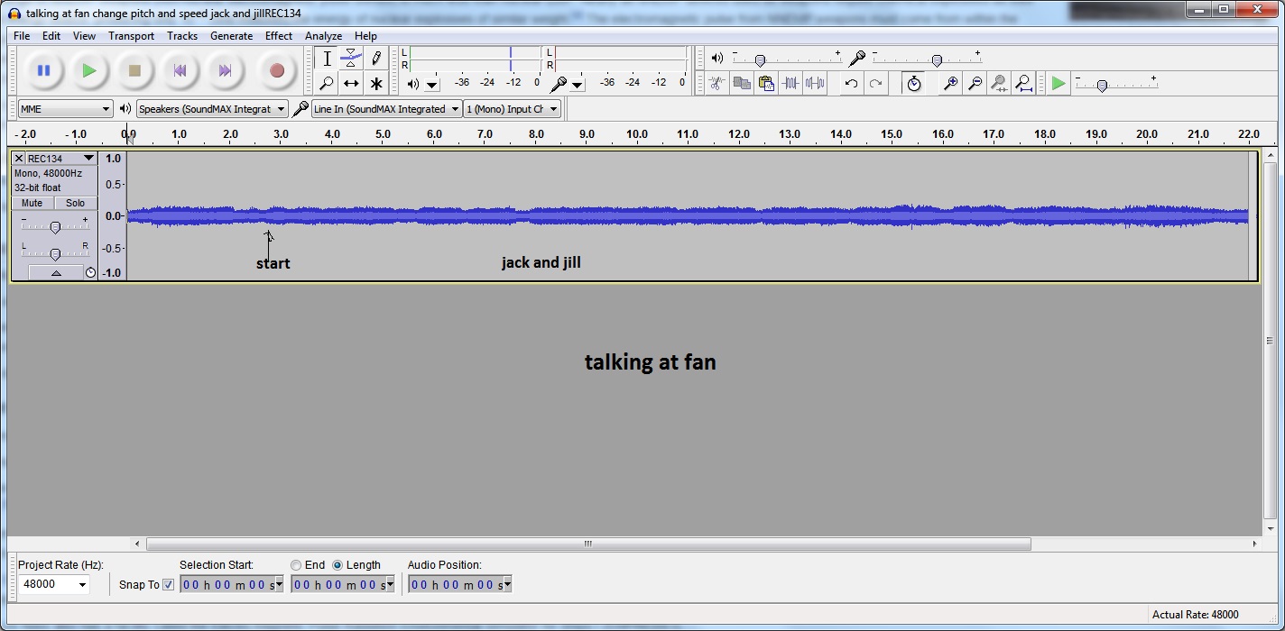 There is some evidence of modulation in this recording of what is being said (reciting jack and jill). You don’t hear my voice because it was recorded directly into the computer not via a microphone but an in-line recording using “audacity”. So this is where it starts.