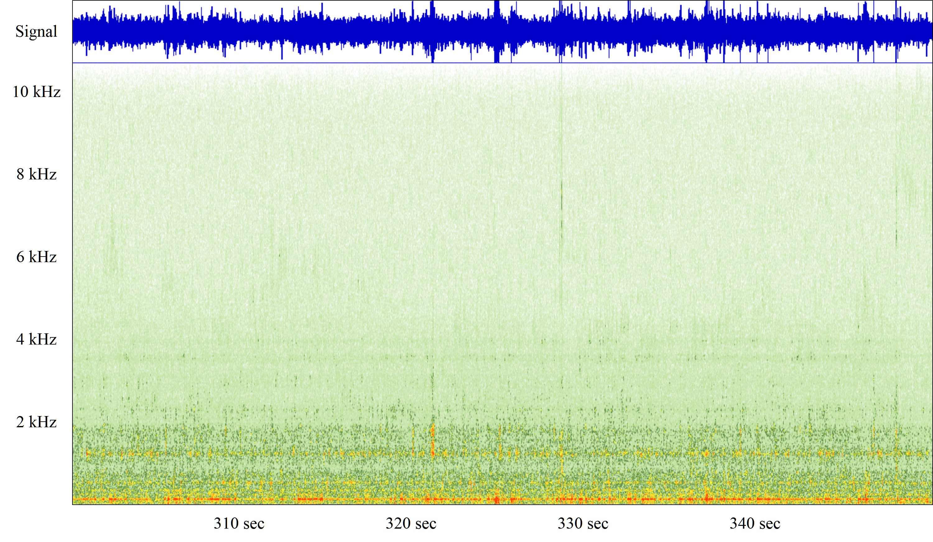 This below is the profile of the recording. The peaks are the 2000 Hz signal with its harmonics.