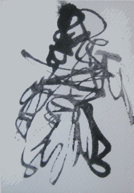 (Spiritual Ninja — a drawing done spontaneously with no thinking in mind, in under a few seconds. Thinking not allowed….)
