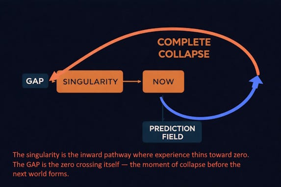 The GAP is not a mystical void. It is a physiological–perceptual collapse window. A brief phase, on the order of a few hundred milliseconds, where the previous moment’s structure dissolves, and the next has not yet formed. Normally, this window is crossed so fast that it leaves no trace. The rebuild is immediate. The self feels continuous. There seems to be no rest at all.