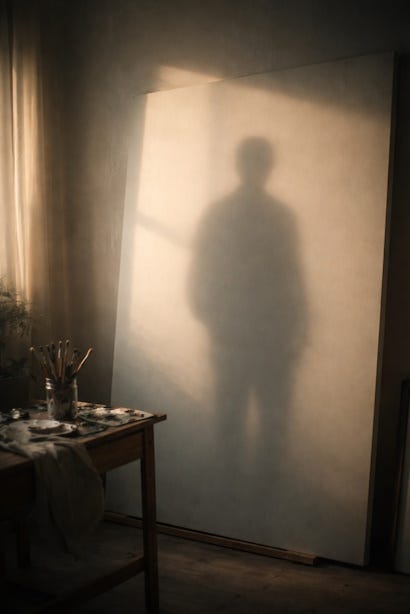 There is a moment before creation when the world seems to lean in. Not loudly. Not with urgency. More like a shift in the air, a subtle pressure, as if something unseen has already begun without you. He feels that now, the painter who has spent years letting shadows speak for him, who has learned to trust the accidents that reveal more truth than intention ever could.
