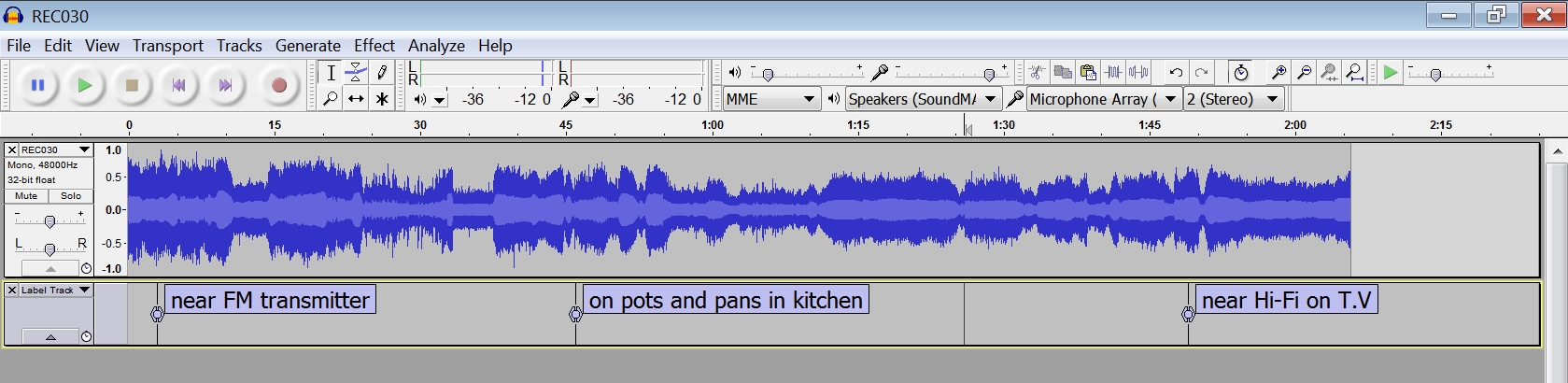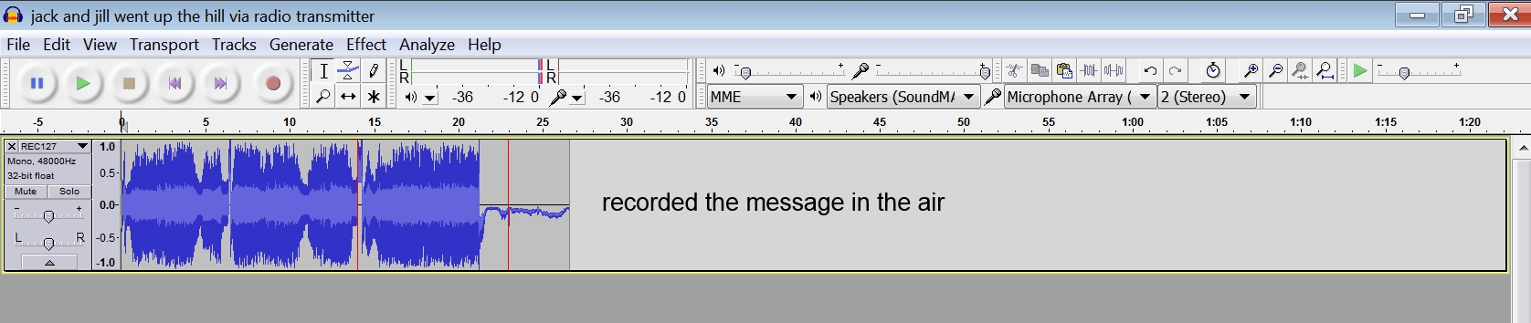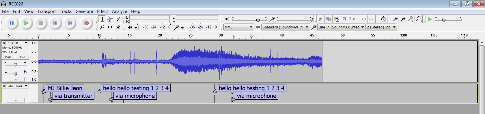 In this experiment I am trying to proof that the silent signal gets through to your brain. It is a case of what I found and what I found. So see what you think of it. Also to point out that how good the results will depend on the state of your batteries, if you are trying these experiments yourself.  So I picked a song from YouTube for this experiment connected it to one of these cam-corder transmitter (the receiver was not used) that transmit in the hearing range.  This transmitter transmits between 80 Hz to 1250 Hz. (hearing range 20 Hz to 20,000 Hz).  This is so there is no jingle jangle about frequencies and if you try one transmitting at at 2.4 GHz say (in most voice transmitters) I think you will find that you will record nothing.