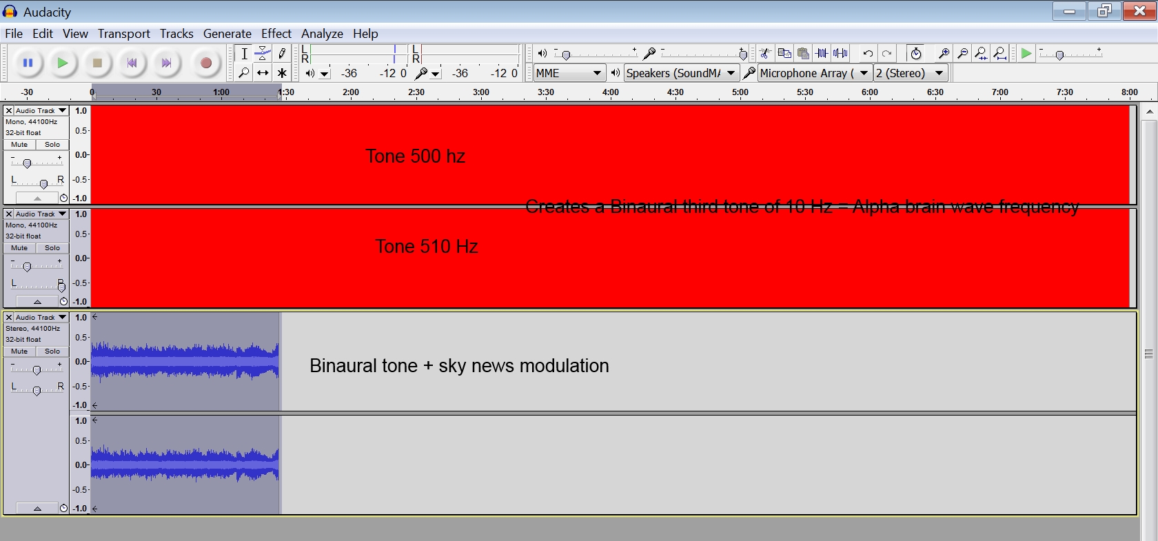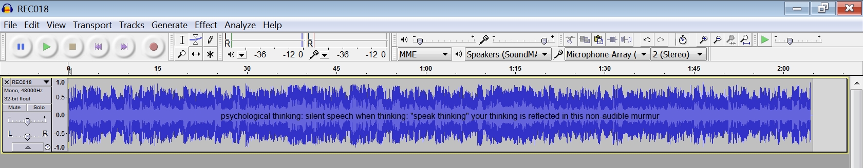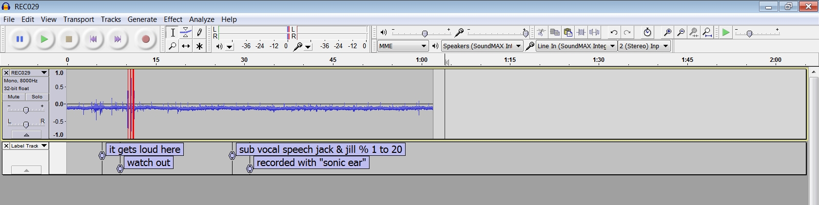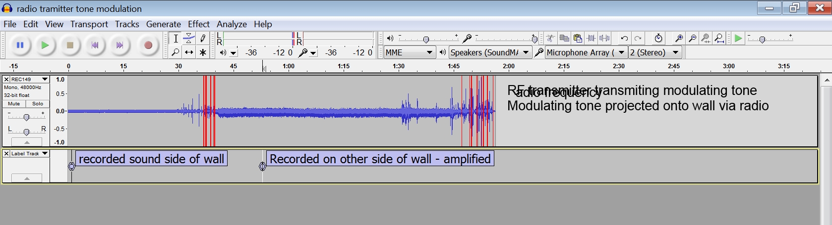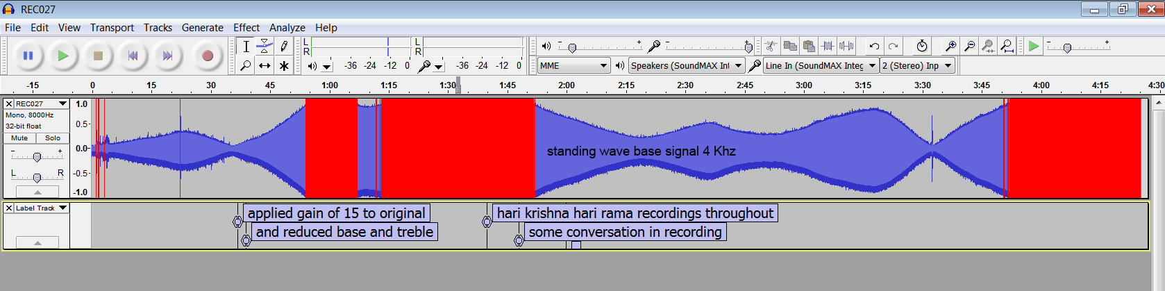 I found that the streaming, and the subliminals on top of the streaming can be captured with little use of equipment for recording but just the use of your computer and some free software called “audacity” that can be downloaded from the net.  It seems from my example that it is possible that the screen on your computer and possibly the electronic components in your computer will capture the stream and can be recorded by the software, “audacity”.  This is encouraging as with some added rather inexpensive microphones much clearer evidence can be recorded.