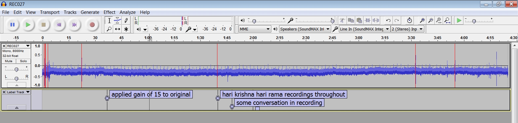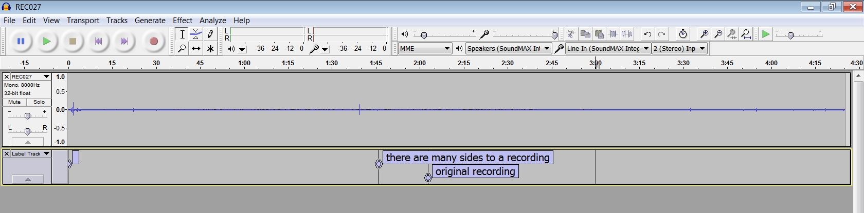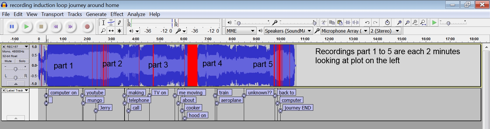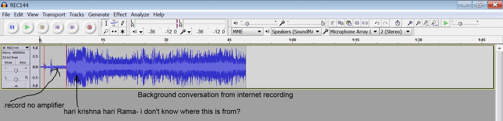 I found that the streaming, and the subliminals on top of the streaming can be captured with little use of equipment for recording but just the use of your computer and some free software called “audacity” that can be downloaded from the net.  It seems from my example that it is possible that the screen on your computer and possibly the electronic components in your computer will capture the stream and can be recorded by the software, “audacity”.  This is encouraging as with some added rather inexpensive microphones much clearer evidence can be recorded.