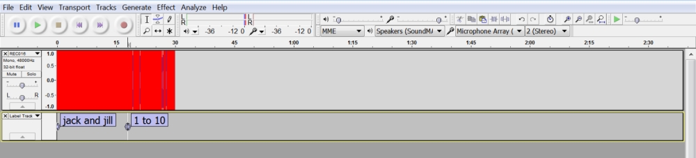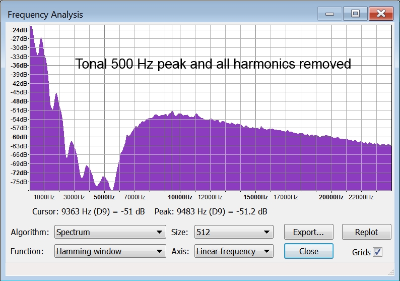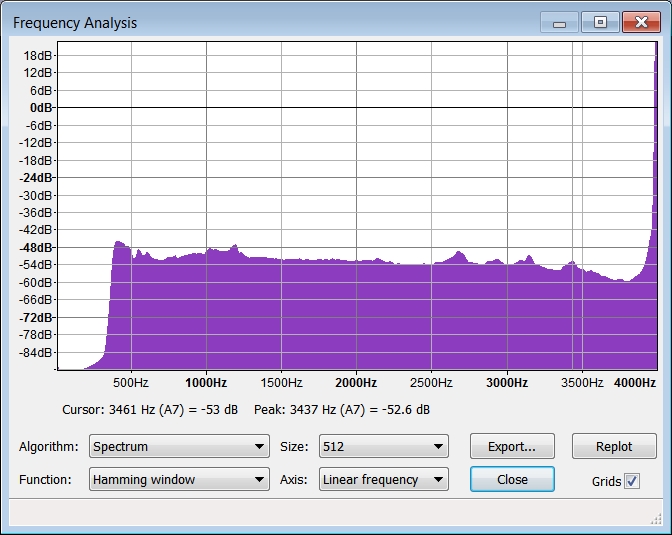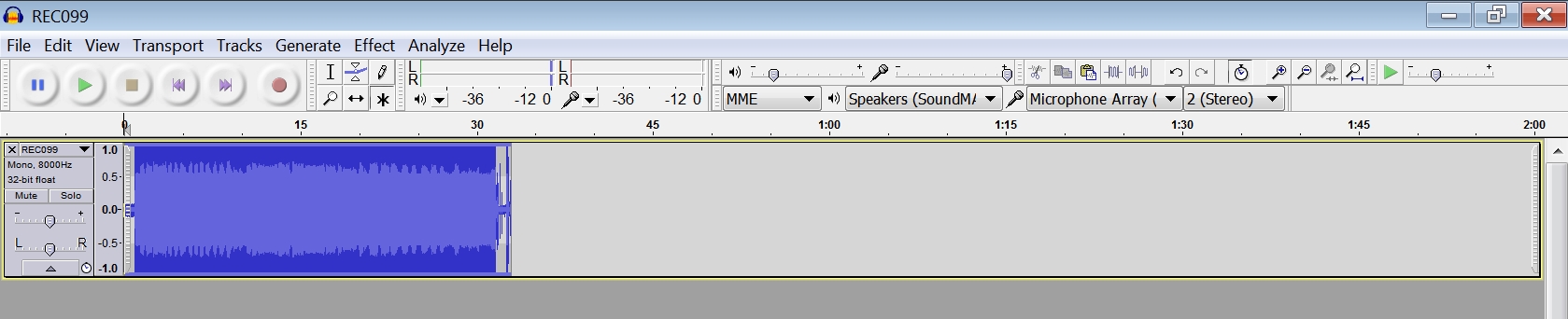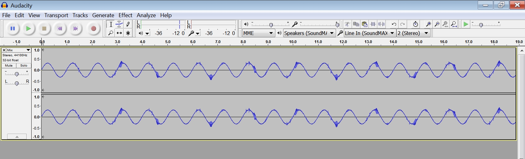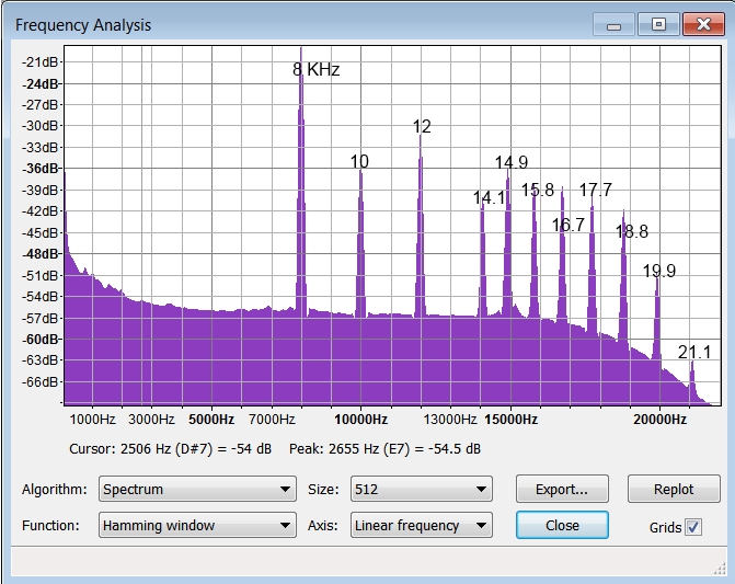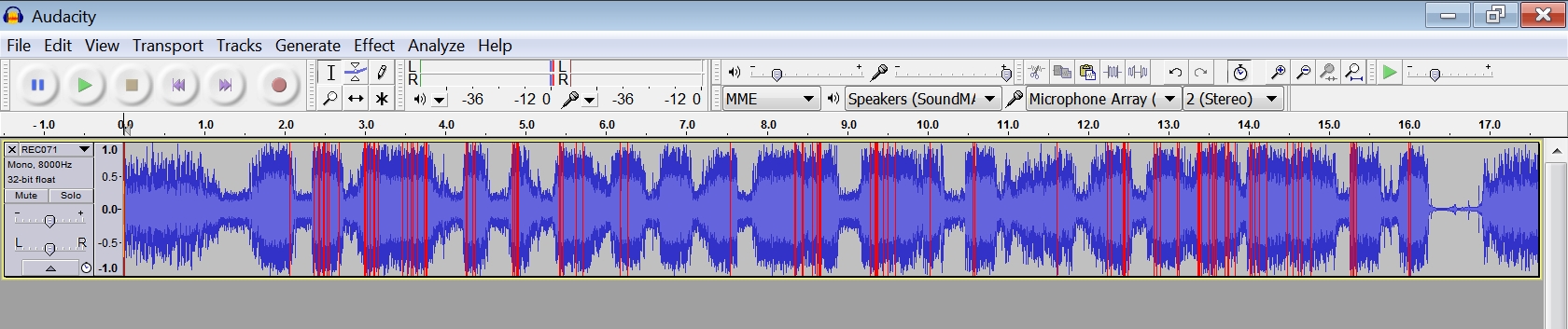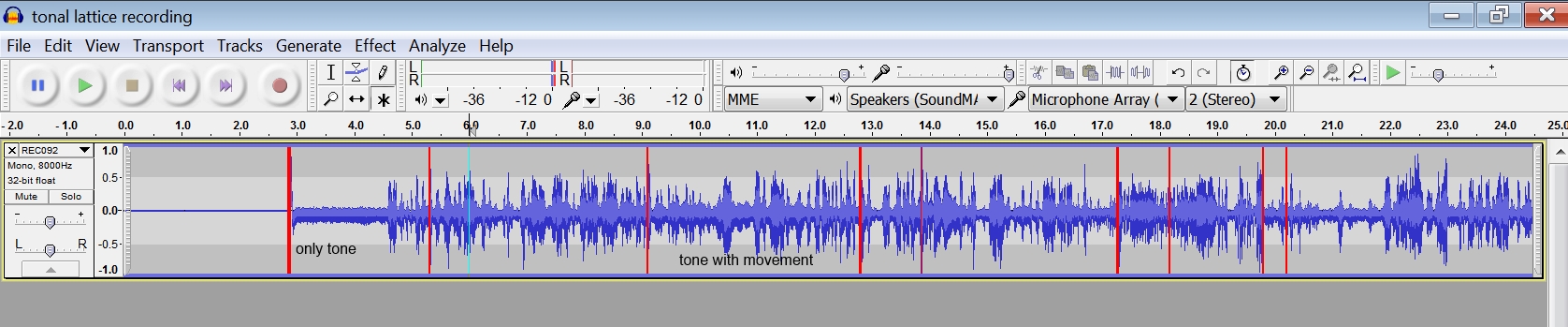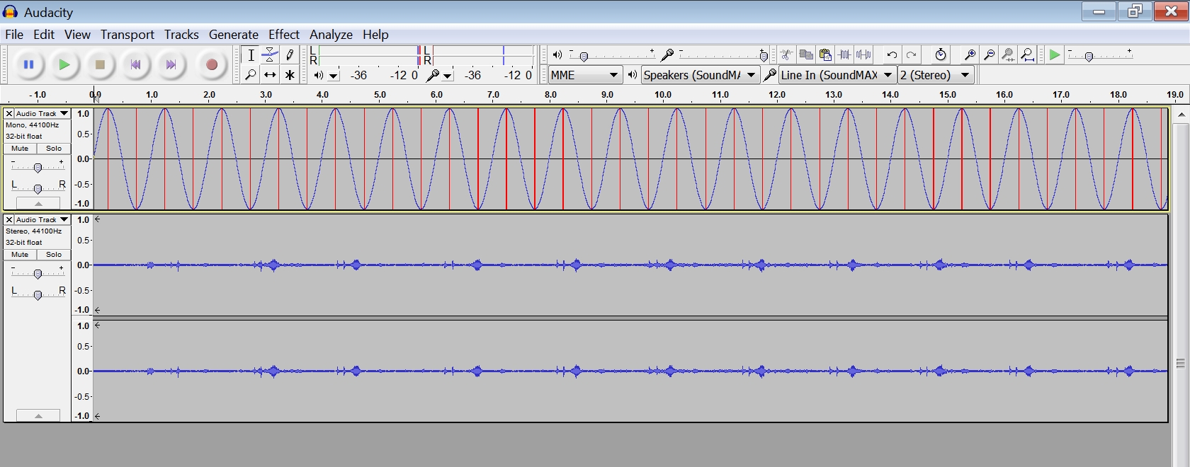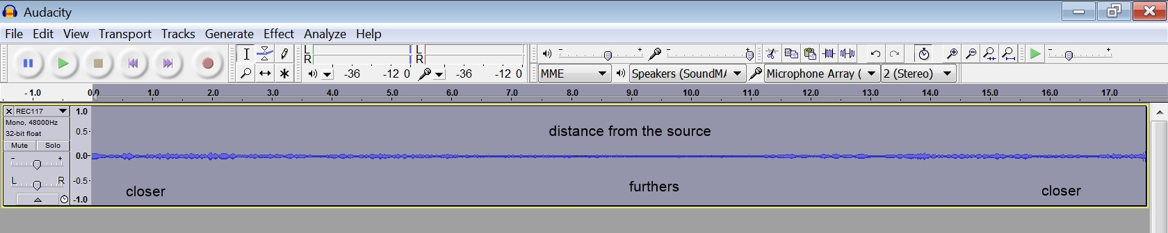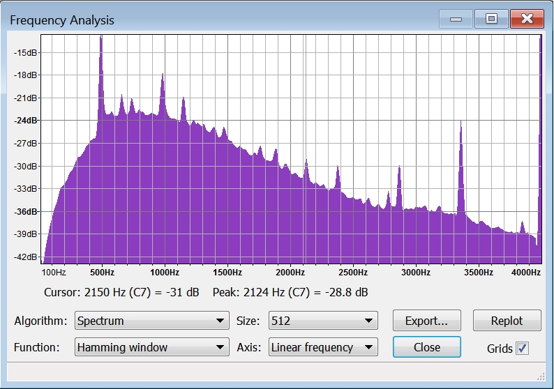 This below is the profile of the recording. The peaks are the 2000 Hz signal with its harmonics.
