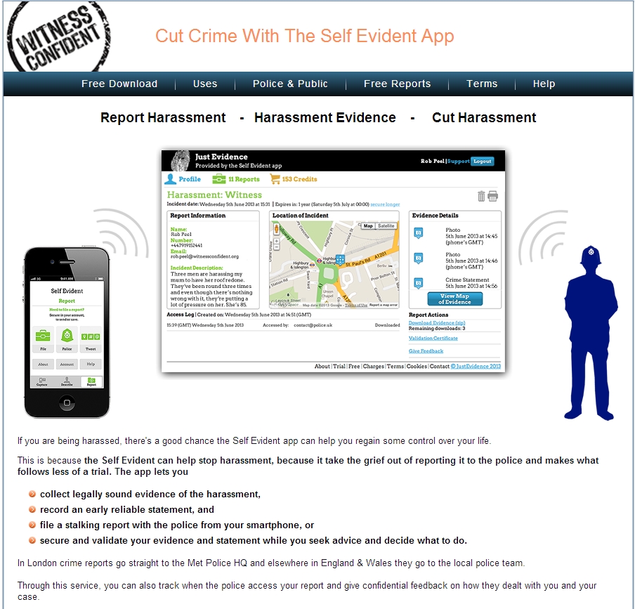 Harassment App for mobile phones it reports directly to the police: don’t report about the police please after he no help.