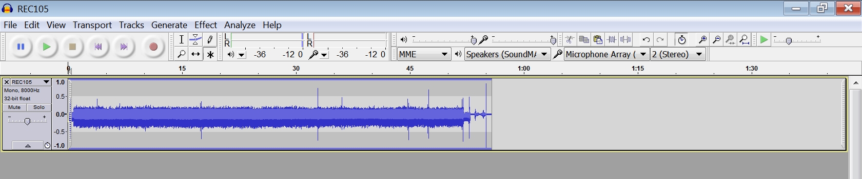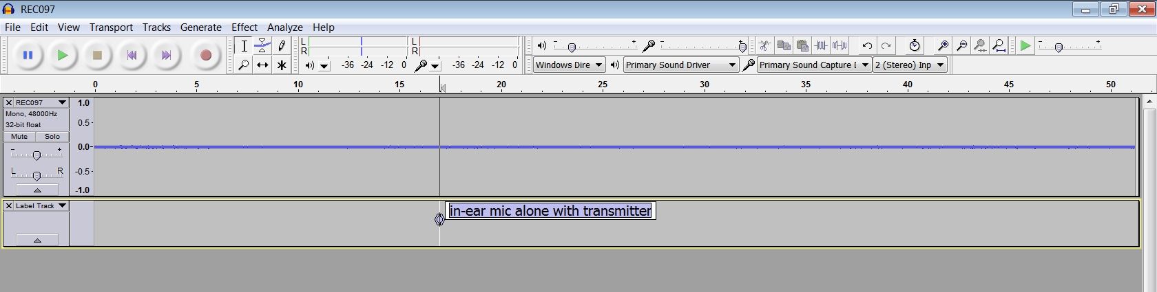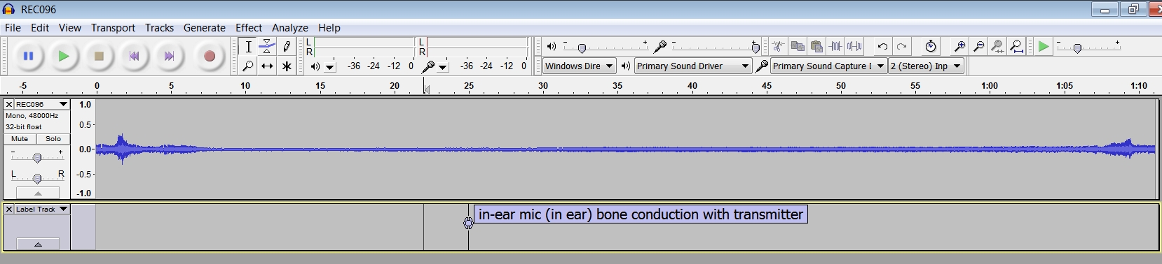 This is what I recorded in the in-ear bone conduction microphone playing a track from Youtube transmitted to my ear (silently through the air) and this was recorded below.  I want to make it clear here that I don’t hear any of this until I play back the recording.