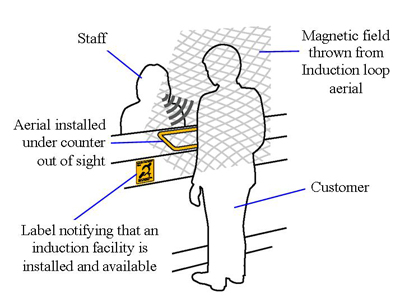 A induction loop system comprises an input source e.g. microphone, output from sound system etc, a dedicated loop driver amplifier and an antenna.”