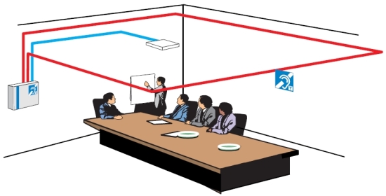 “Perimeter induction loop systems are the most common and are used in applications where a room is to be covered by the loop system. This system has the loop cable run around the perimeter of the room forming a complete “loop”, so the whole room is covered by the magnetic field. This would normally be used in churches, village halls, etc. It must be noted that the magnetic field produced by a perimeter loop can radiate for many metres outside the looped area. This is called overspill. Therefore if confidentiality is an issue or adjacent rooms need systems a low spillover loop should be installed.”