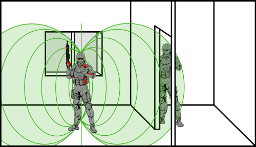 If it comes at you in an enclosed space, it hits a wall or object with a “click” and spreads out as you see it below. If it hits soft tissue you only feel the pain and hear nothing and repeated hits on the eye means “specsavers”. There is a difference with the left and the right in the diagram below, left: you can hear it and the right: you cannot hear it, but it is there next to you and all around you. You can see how modulation of that ultrasound signal can be harvested for speech: that is both conventional and subvocal speech as “speak thinking” where one silently speaks what one is thinking.