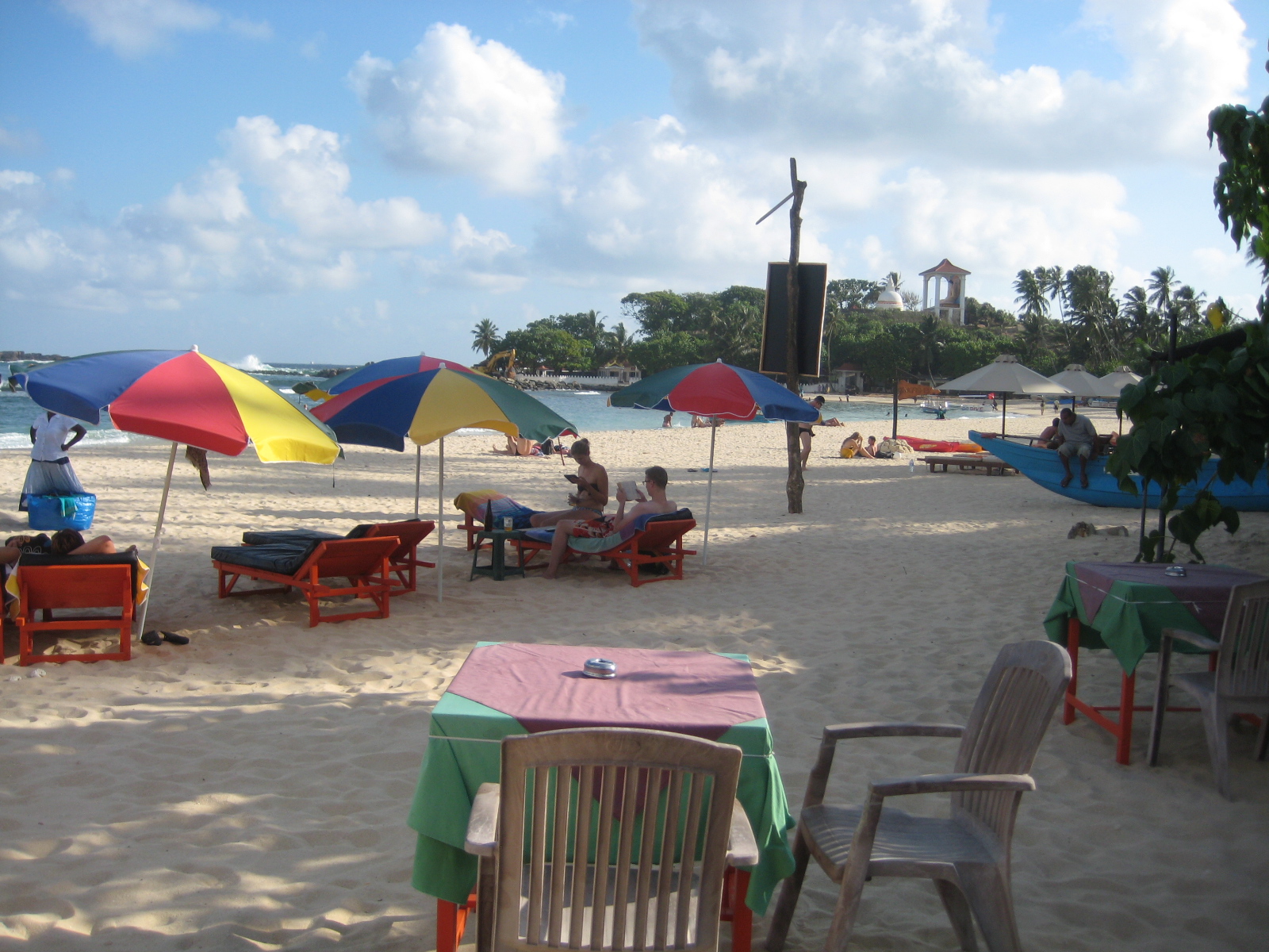 All this for about 30 UK pounds for 3 people/day. Your morning coffee will not be the same again with the view and the sound of the ocean from this rather simple inexpensive place. Mihiripenna Beach Resort, Unawatuna bay.