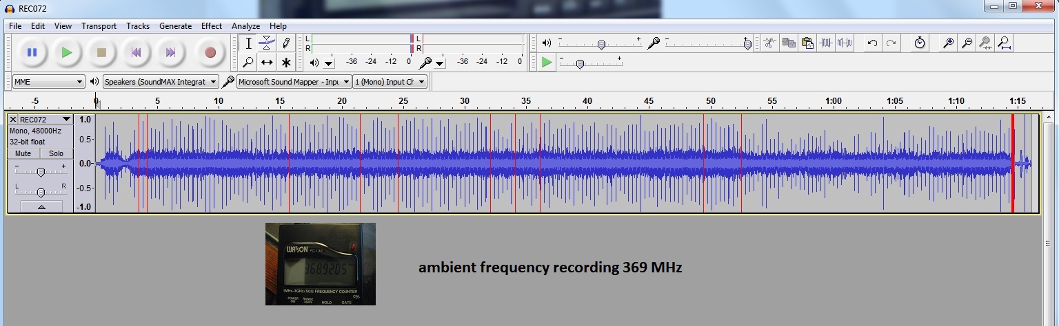ambient frequency  recording T-coil and frequency counter detail