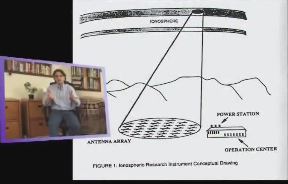 The HAARP electromagnetic signal, like the signal from the transmitter in the experiment, connects with the ionosphere (“from about 85 km to 600 km” ), takes it around the world and radiates it back into the earth along the way.
