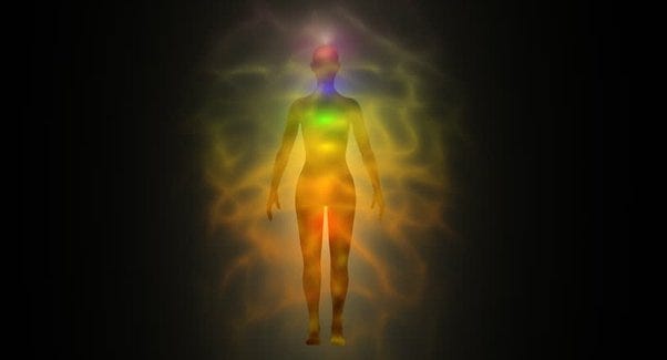 The aura around the body-mind comes from its energy dynamics and the EM nature of the nervous system.