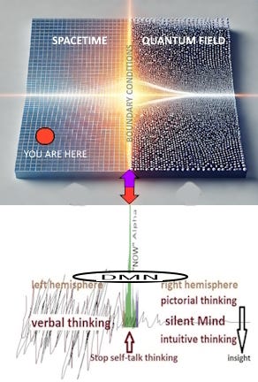 To glimpse this field is to realise that the world we inhabit is a projection, a holographic condensation of something infinitely subtler. The brain usually acts as the collapse mechanism that translates that boundless field into a localised story of “this body” and “that tree.” But when the collapsing relaxes, awareness enters the space before form takes shape — the wave reality that all things emerge from.