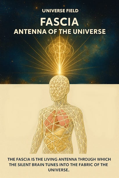You could say the question is no longer whether the brain interfaces with the universe directly. The question is whether the fascia, through its continuous resonant field, gives the silent brain the foothold it needs to tune into the larger field around it. And the evidence we have is enough to make the question meaningful rather than speculative. The fascia is not an antenna in the mechanical sense, but it behaves like an internal aerial for vibrational information. It is the medium through which the body communicates before thought, before self, before choice. The rest is interpretation.